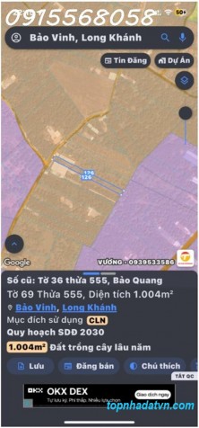 ???? Chủ Ngộp – Cắt Lỗ Sâu 1Tỷ3 lúc mua tới 1ty9– Lô 1004m² (8x126) Tại Bảo Quang, Long Khánh – Đất