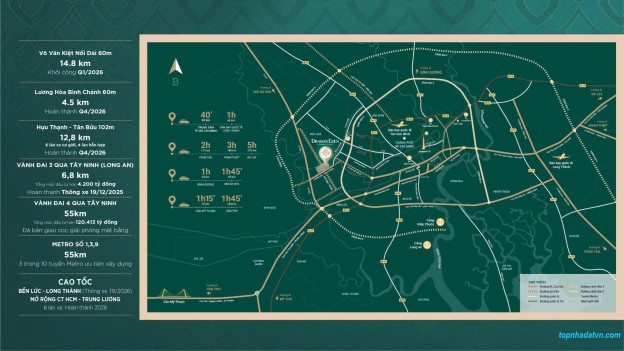 Mặt tiền 60m kết nối trực tiếp Đại lộ Võ Văn Kiệt nối dài, trục Đông – Tây huyết mạch, di chuyển nhanh vào trung tâm TP.HCM.