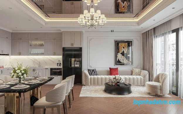 Tầng 4: Phòng khách + Bếp.